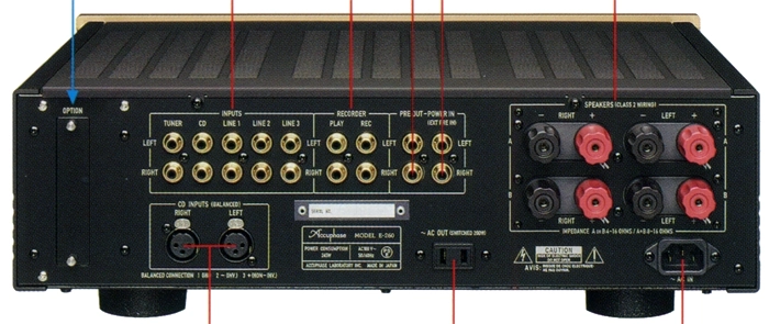 E-260では回路的にプリアンプ部とパワーアンプ部が分離されており、スイッチで分離し、それぞれを独立して活用できる構造となっています。