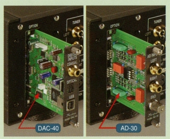 オプションボードはデジタル入力ボードDAC-40やアナログ・ディスク入力ボードAD-30、ライン入力ボードLine-10などがあり、用途に応じてリアパネルに増設が可能です。