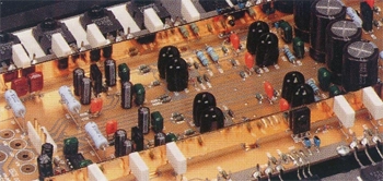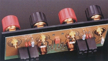プリントボードの銅箔面や入力端子、スピーカー端子、音楽信号の透過する主要な部分には金プレート化が施されています。
