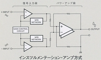 P-7100では新たにアンプ全体の構成にインスツルメンテーション・アンプ方式を採用しています。