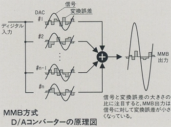 この方式では20ビットD/Aコンバーターを多数個並列駆動させる事でリニアリティや高調波歪率、ダイナミックレンジ、S/N比等の大幅な改善を図っています。