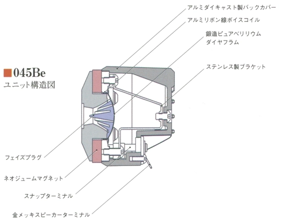 振動板には鍛造ピュアベリリウムダイアフラムを採用しています。