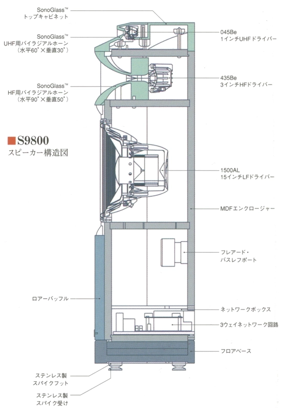 | ユニット等 | 低域用:38cmコーン型(1500AL) 高域用:ホーン型(435Be+38mm径バイラジアルホーン) 超高域用:ホーン型(045Be+8.9mm径バイラジアルホーン) |