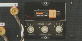 HFレベルスイッチは3段切換式となっており、高音域±0.75dBのレベル微調整が可能です。また、LFダンピングコントロールスイッチでは組み合わせるパワーアンプの特性によってダンピングを3段階に調整する事が可能です。