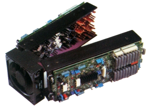 SM1000ではP510で実証ずみのものをさらに改良して採用しており、長さの異なる5種類のフィンをそれぞれのパワートランジスタに取り付け、冷却ファンによって強制空冷しています。