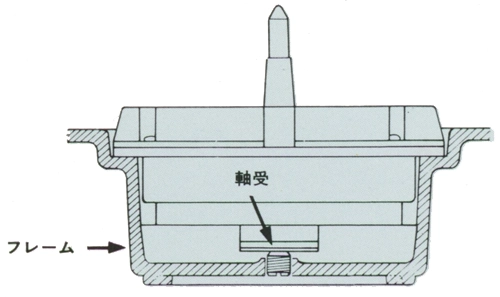 さらにモーターシャフト軸受部をフレームと結合する事で、重量級ターンテーブルの回転に伴う大きなイナーシャを支えており、機械的な強度を考慮しています。