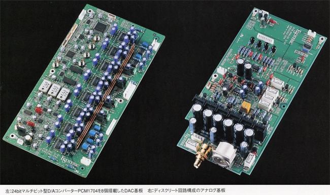 D/A変換部には24bitマルチビット型D/AコンバーターであるPCM1704を8個組み合わせて使用しており、S/N比とリニアリティ向上を実現しています。